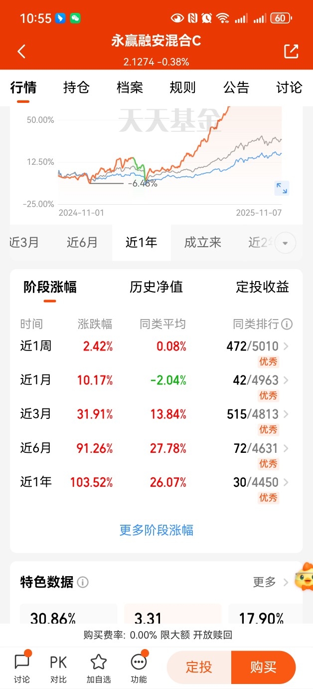 $永赢融安混合C$ 聚焦科技核心赛道,但不局限于单一细分领域,业绩表现优秀,近一个月涨幅+10.17%,近六个月涨幅+91.26%,近一年涨幅+103.52%,而同类平均只有+26.07%,不愧是难得一见的“翻倍基”,这全得益于基金经理高楠对科技行业轮动机会的精准把握,以及其“攻守兼备”的卓越投资策略,均衡配置我看行。#A股低开高走!国际资本看好中国资产#