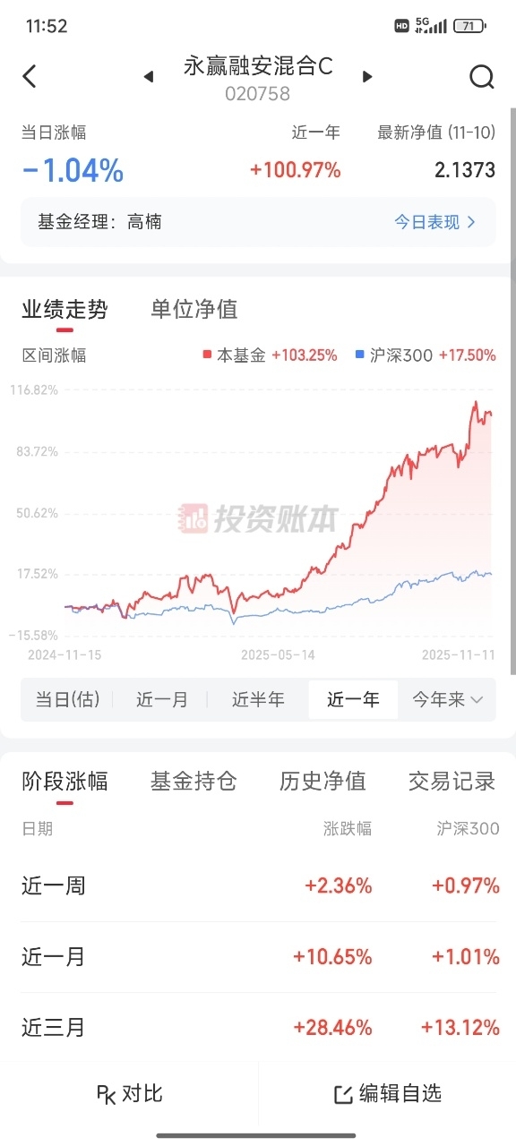 今天上证指数震荡回调了,打算分批定投永赢融安C020758买的是量子和CPO,近一年收益率103.09%,业绩非常好,这基发展前景广阔,我会逐步上仓位,今日定投上车布局起来,期待后续行情发力跟随着吃肉啦!