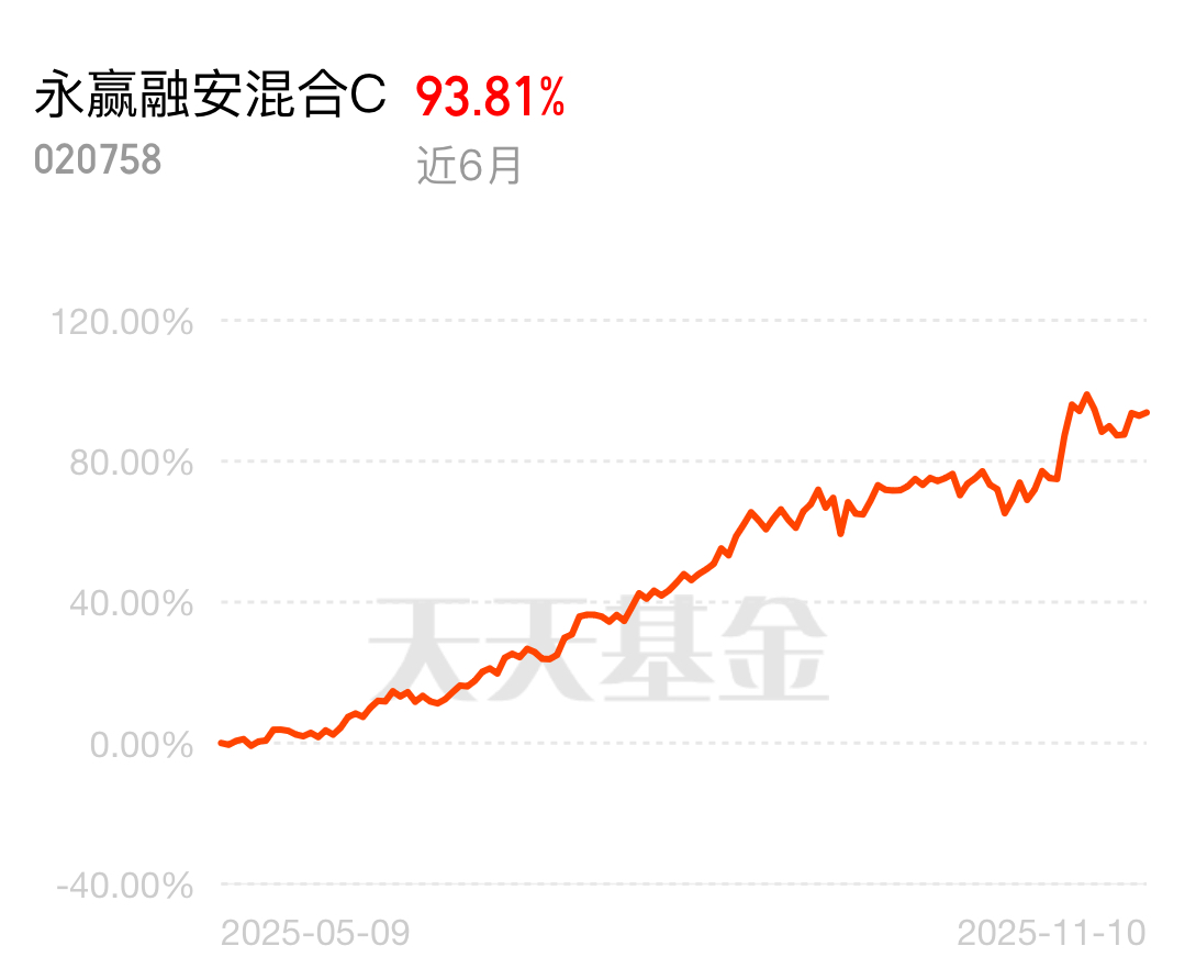 $永赢融安混合C$半年涨近93个点,挺有实力的,找机会买起来了