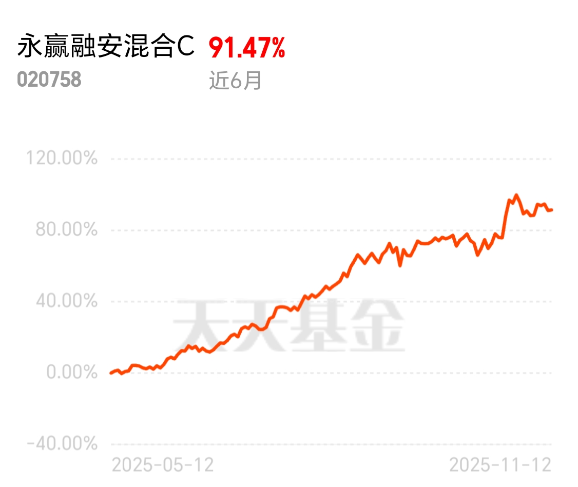 $永赢融安混合C$ 在AI算力、半导体、光通信、存储芯片待领域切换自如。看业绩,近一个月涨9.93%,近半年涨超91.47%,业绩同类排名靠前,看来基金经理的操作策略攻守兼备。