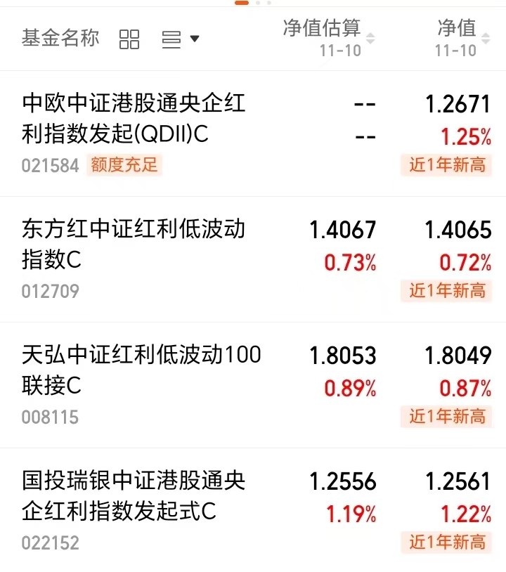 $中欧中证港股通央企红利指数发起(QDII)C(OTCFUND|021584)$今天上涨1.25%;
