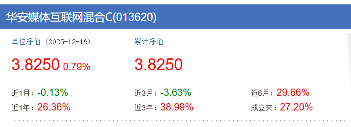 $华安媒体互联网混合C$(013620)上周五涨了0.79%