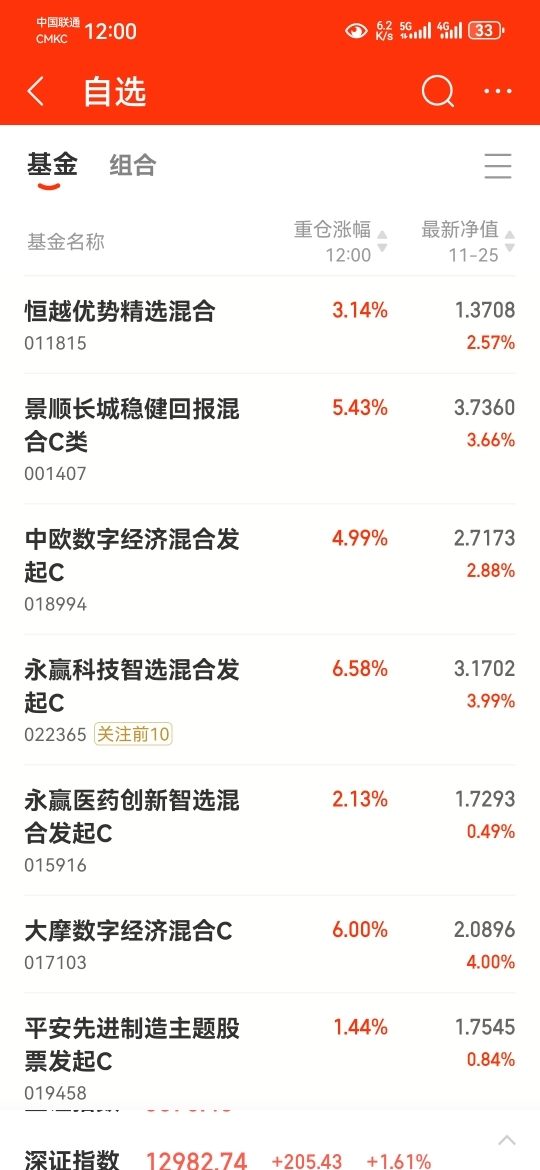 今天指数继续上涨,不好的信号成交量没有继续放大。今天科技继续大涨,这次科技很可能企稳了,仔细观察回踩力度就行了。今天我仓位继续保持不动,明天看看情况在决定是否减仓。今天医药也可能创新高了,科技和医药板块最好也做个波段操作,明天我准备减仓,到时候等回调接回这两个板块。看看明天怎么样吧,由于今天上涨力度很大,所以我今天肯定不会减仓。中午收盘,永赢医药上涨2.13,永赢科技大涨6.58。