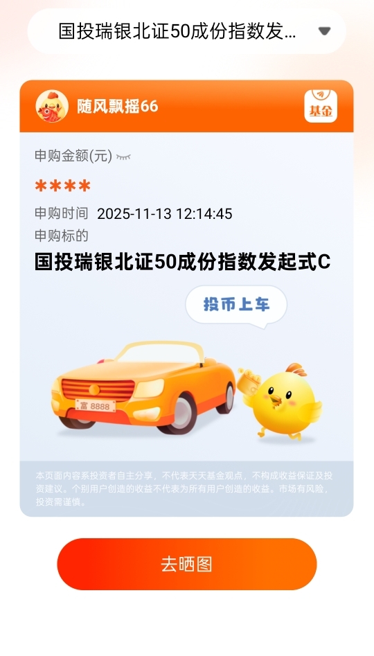 北证50 新基上车了,好像他们自己的平台更便宜点