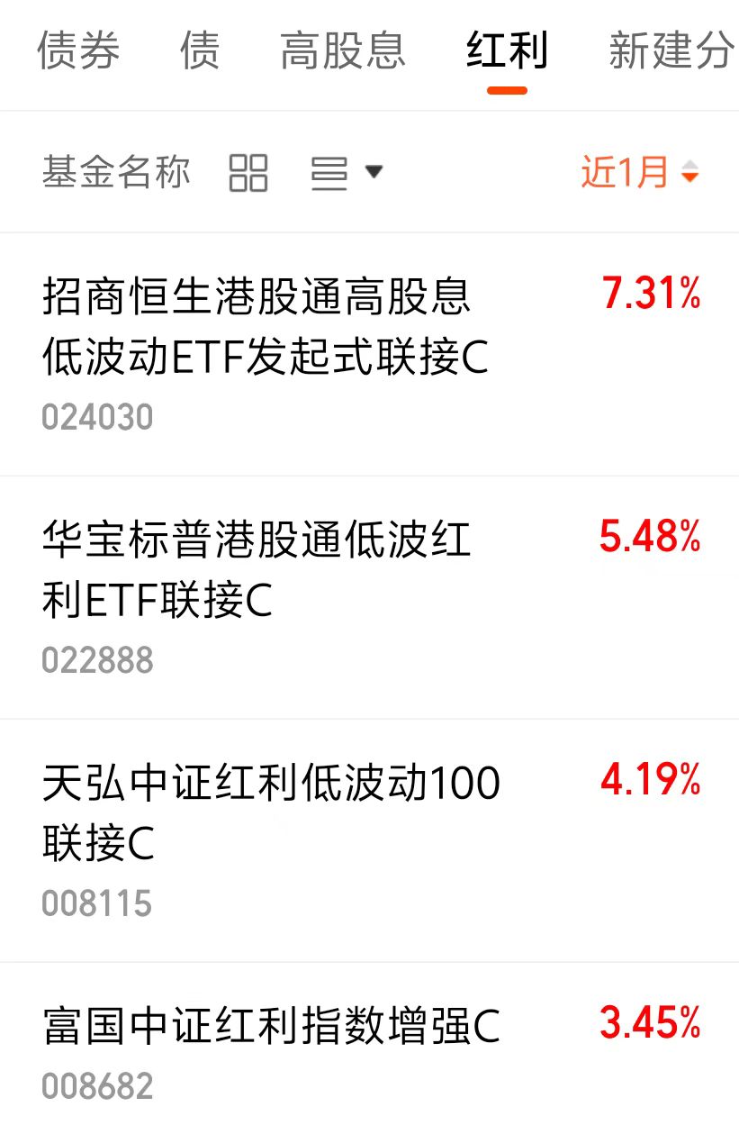 $招商恒生港股通高股息低波动ETF发起式联接C$ 近一月上涨了7.31%