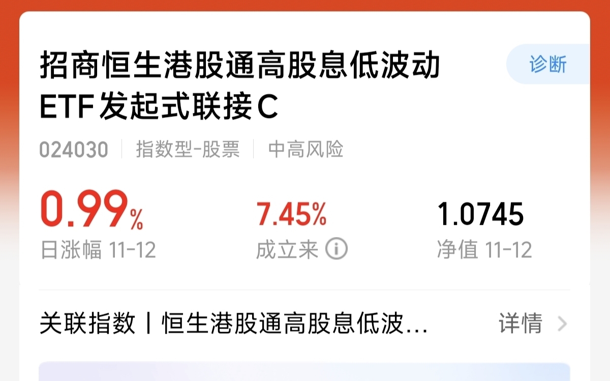 进入四季度,目前市场表现好的还是红利。有更高股息率的港红利最近再度迎来爆发。$招商恒生港股通高股息低波动ETF发起式联接C$ 昨天竟然又上涨0.99%。紧跟恒生港股通高,股息低波指数。长期稳定盈利的能力强。聚焦的都是港股稳定的红利资产。看好今天继续突破。