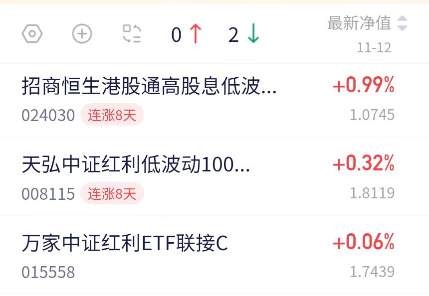 $招商恒生港股通高股息低波动ETF发起式联接C(OTCFUND|024030)$昨天上涨0.99%,已经连续上涨8天了