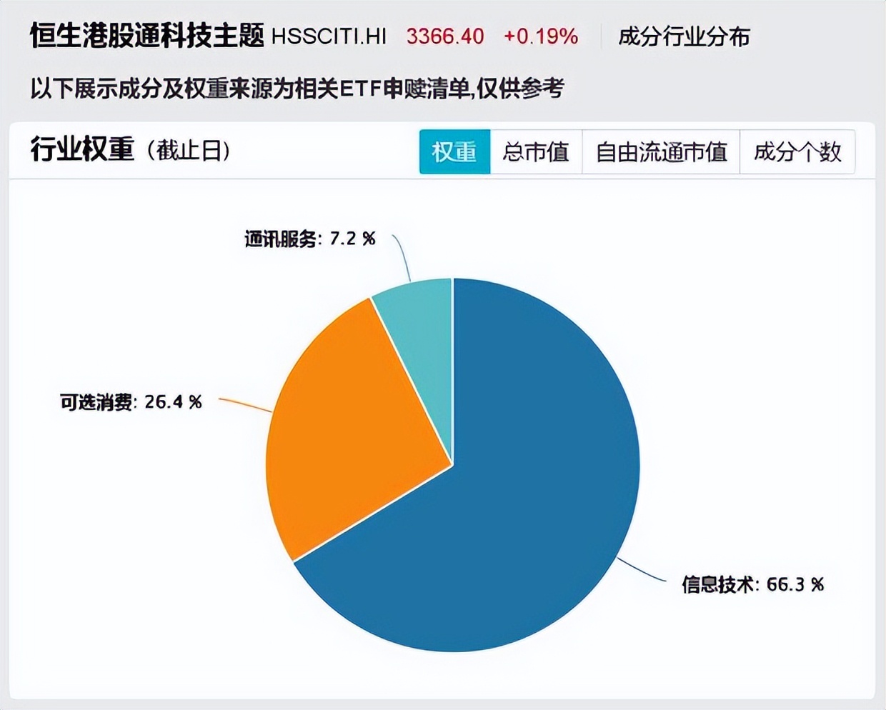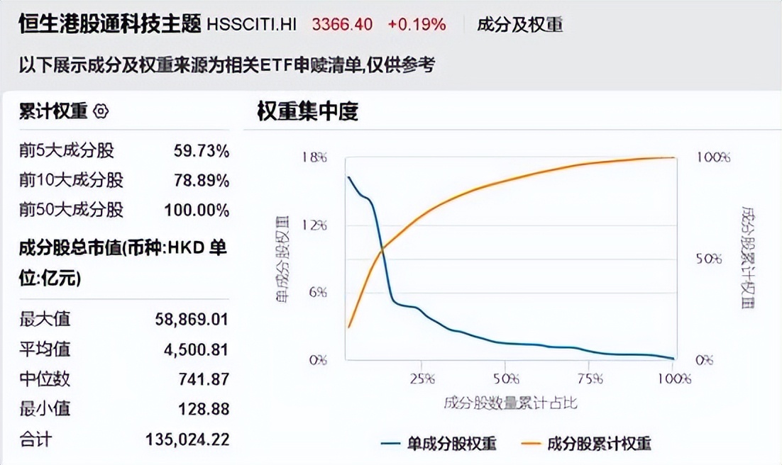 可以看到,恒生港股通科技主题指数的配置集中在TMT产业。根据WIND一级行业分类,66.3%集中在信息技术产业,TMT含量高达73.5%。