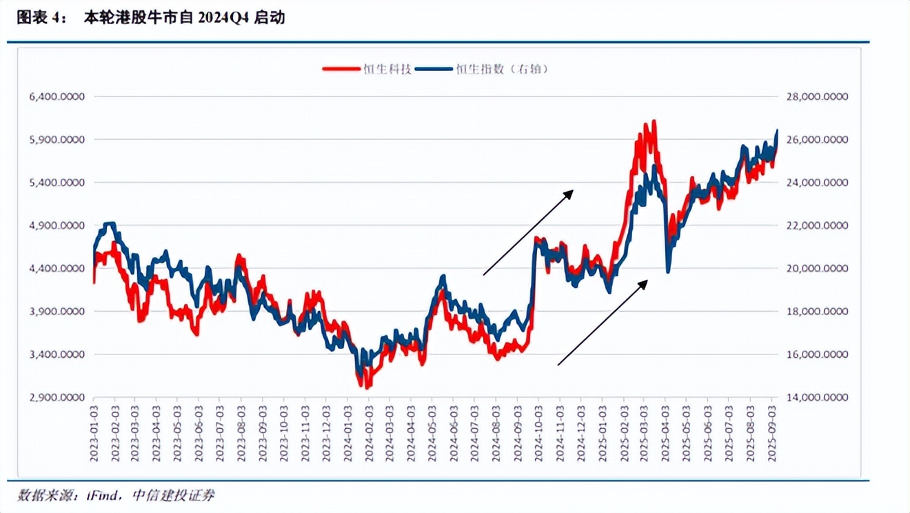 很明显,美元进入降息周期后,港股受益于资金外溢,之前资金面紧张的问题得到了解决,这对港股而言就是长期利好。