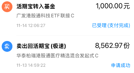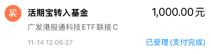 我加仓$广发港股通科技ETF联接C(OTCFUND|025198)$1000元,跟踪的恒生港股通科技指数最近一直震荡盘整,受隔夜美股科技下跌影响,今天调整幅度不小,不过下方也有半年线强支撑,我认为下跌空间不大,趁这会看跌1.9%左右,我低吸一笔,目前港股是全球估值洼地,长期持仓安全边际比较高。