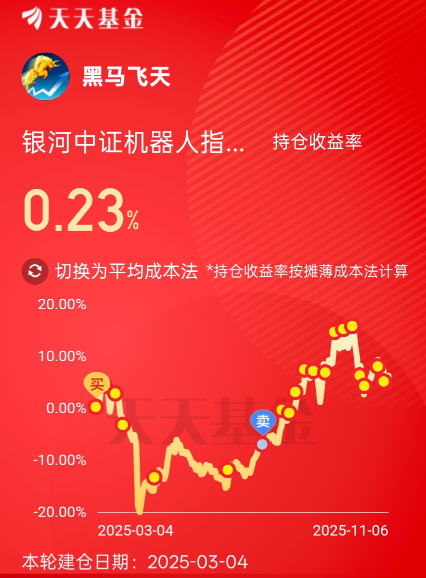 $银河中证机器人指数发起式C(OTCFUND|021302)$投了近250天,目前在成本价上,周定投继续进行。