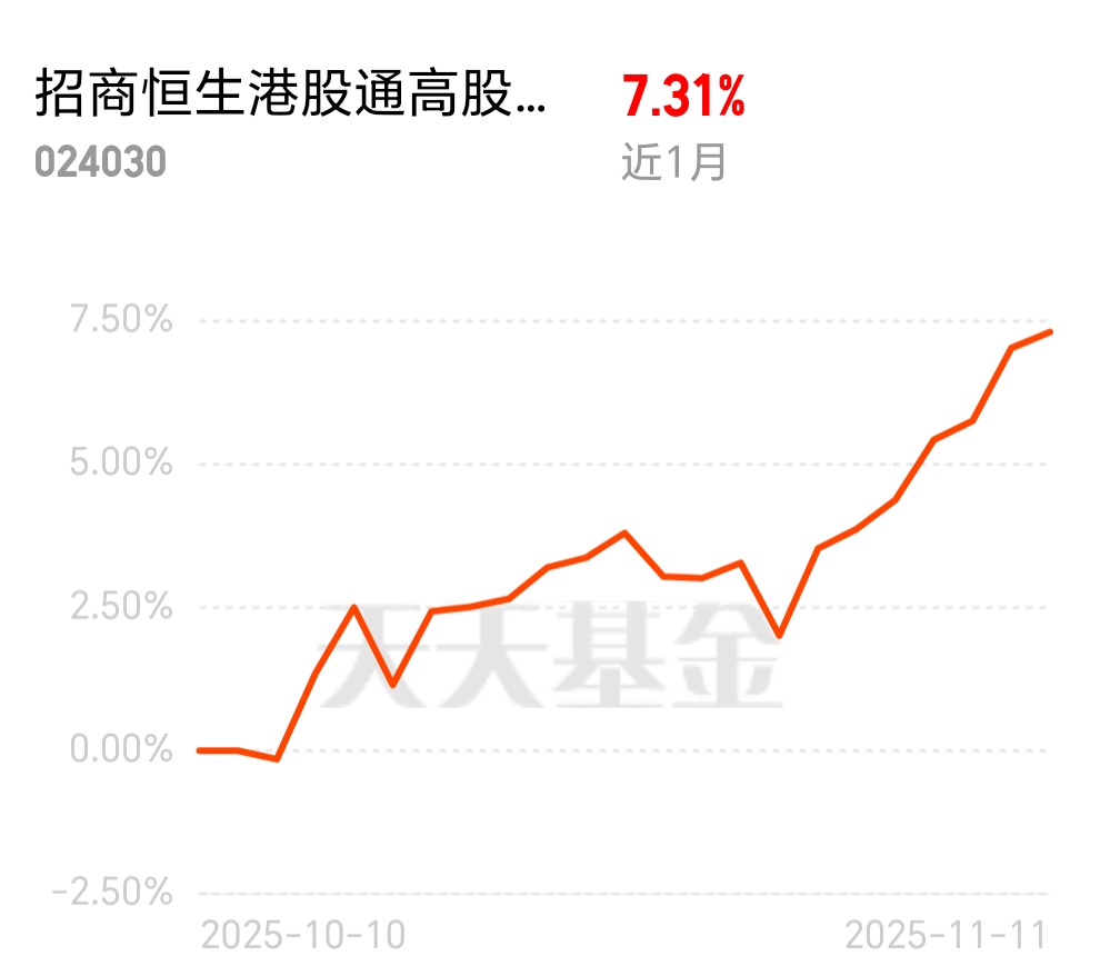现在大家都在找稳健的理财替代品,银行理财收益越来越不尽如人意。招商恒生港股通高股息低波动ETF联接C近1个月收益7.31%,月月分红,是优质替代。