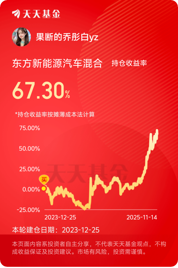 本来只是试试水,结果新能源直接起飞,锂矿带飞全场,我的东方新能源都赚了67.3$东方新能源汽车混合$ #晒收益#