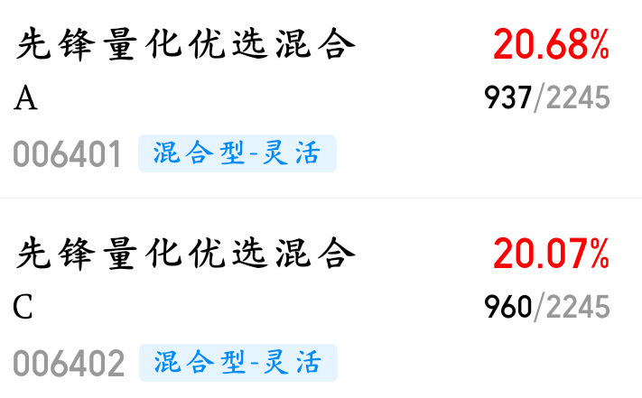 另外同一个基金经理曾婕管理的 先锋量化优选混合C 近一年也上涨了20.07%,表现也还不错,我自选一波。