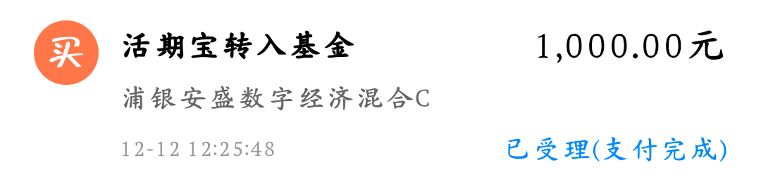 买进1000的 $浦银安盛数字经济混合C(OTCFUND|025422)$
