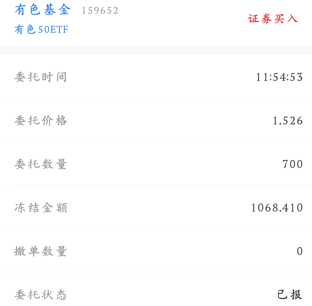 挂单买进1000汇添富的 $有色50ETF(SZ159652)$