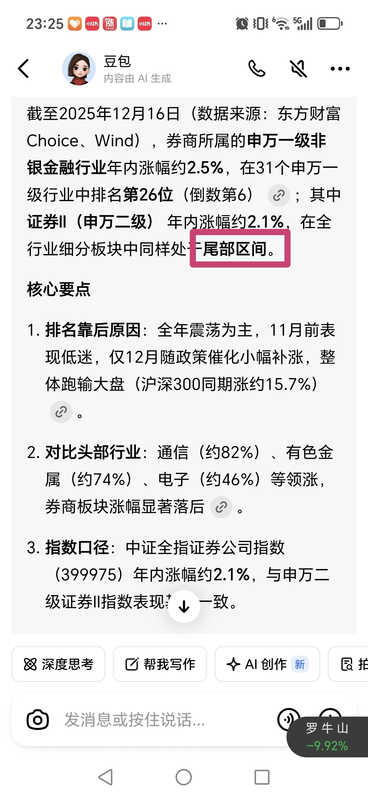 二、2025年券商板块严重滞胀,首次出现大盘走牛、券商末尾的情况。