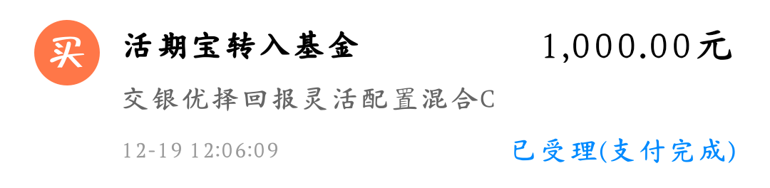 买进1000的 $交银优择回报灵活配置混合C(OTCFUND|519771)$