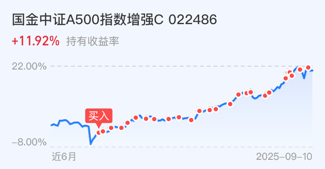 我继续加仓$国金中证A500指数增强C(OTCFUND|022486)$ 5000元!跟踪的中证A500指数这会看涨1.7%左右,依然还在5日均线之上波动,趋势没啥问题,而且相比行业基金波动要小很多,趁前面调整还没涨出新高,我继续上车一笔。