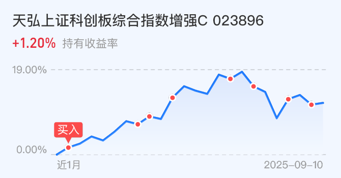 我继续加仓$天弘上证科创板综合指数增强C(OTCFUND|023896)$ 3000元!跟踪的科创综指前面调整时我连续低吸加仓加对了!今天盘中大涨超4%,直接吃大肉!目前已稳稳的在20日均线上方波动,趁还没突破前面高点,我抓紧再加上一笔。