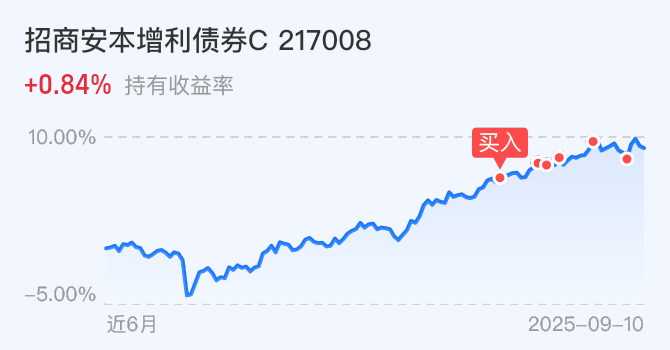 我加仓$招商安本增利债券C(OTCFUND|217008)$ 10000元!上周四连跌3天的时候我就买到了便宜筹码,第二天直接收了121个蛋!可见下跌时买入胜率更高,所以有调整我就看做是倒车接人机会。安本增利是股债二八开策略,股票占比20%左右、债券占比80%左右,但债券中又投了40%可转债,所以日常波动略大,业绩也更强,近1年已涨超22%,在权益市场上行中优势更大,我继续提升仓位!