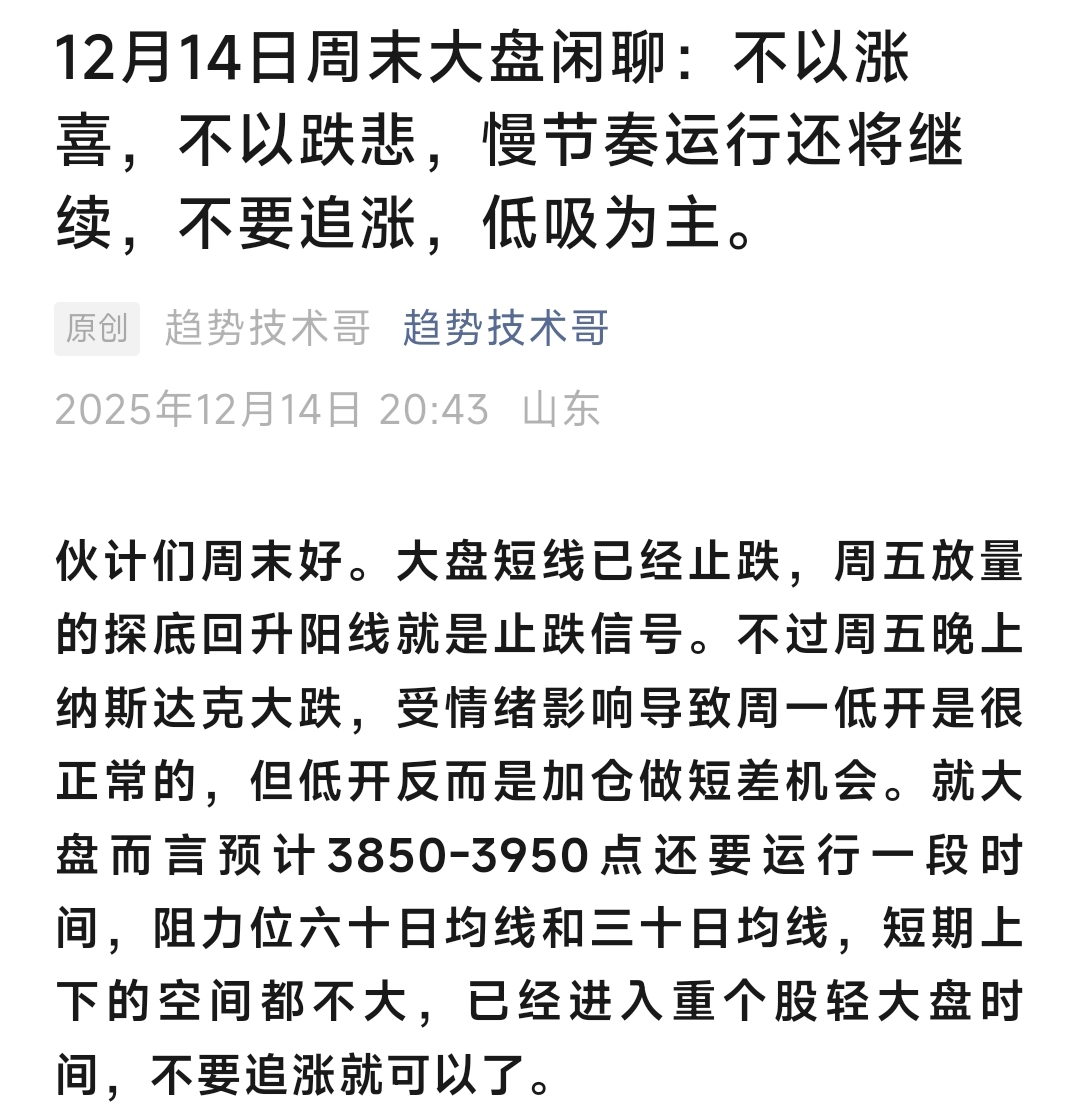 12月14日周末闲聊:不以涨喜,不以跌悲。
