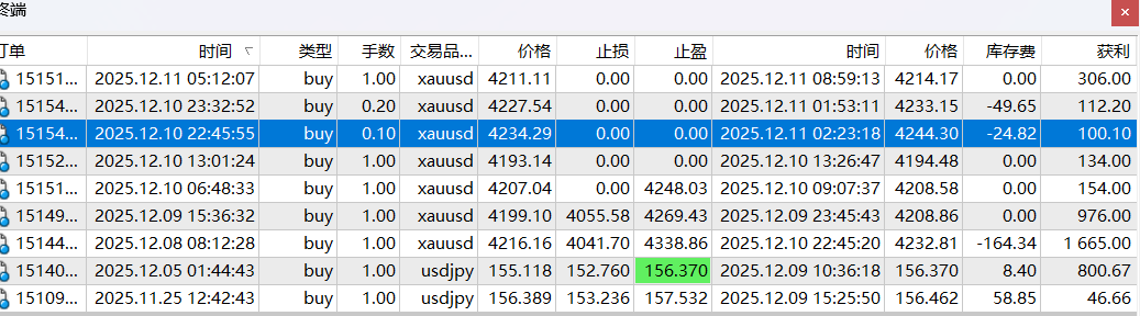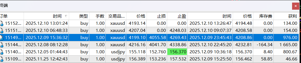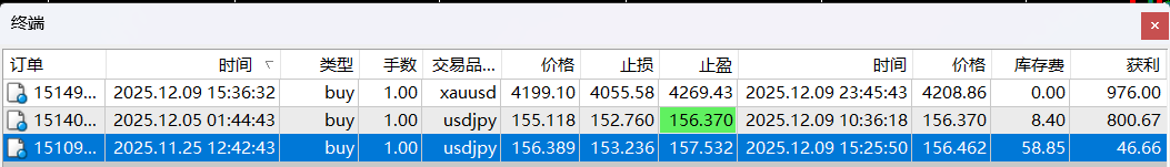 前几日提示USDJPY进场做多,果然大涨了,我的单止盈了。赚的全是美元哦!!!!