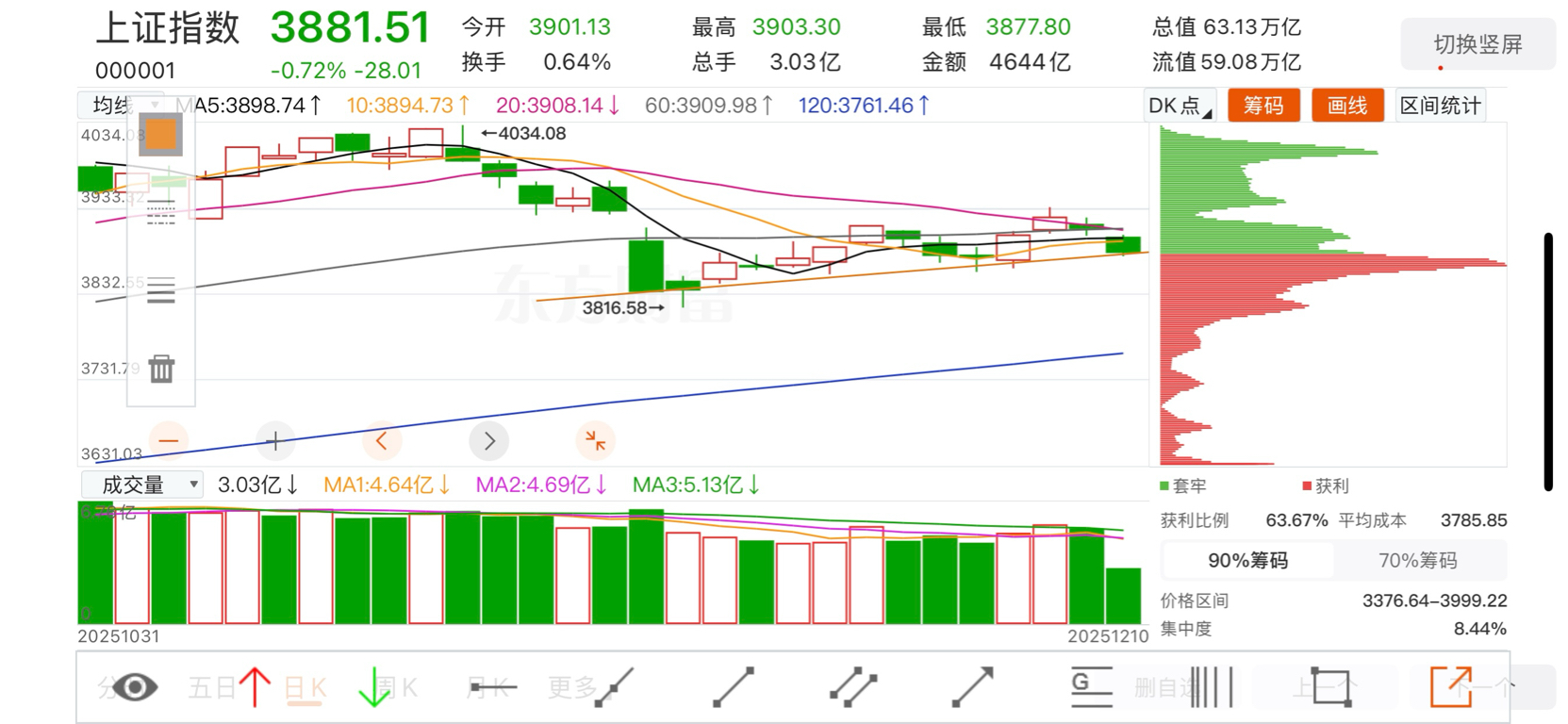 按照这个趋势,今天最低点在3880的话,支撑有效明天没有意外那就上涨