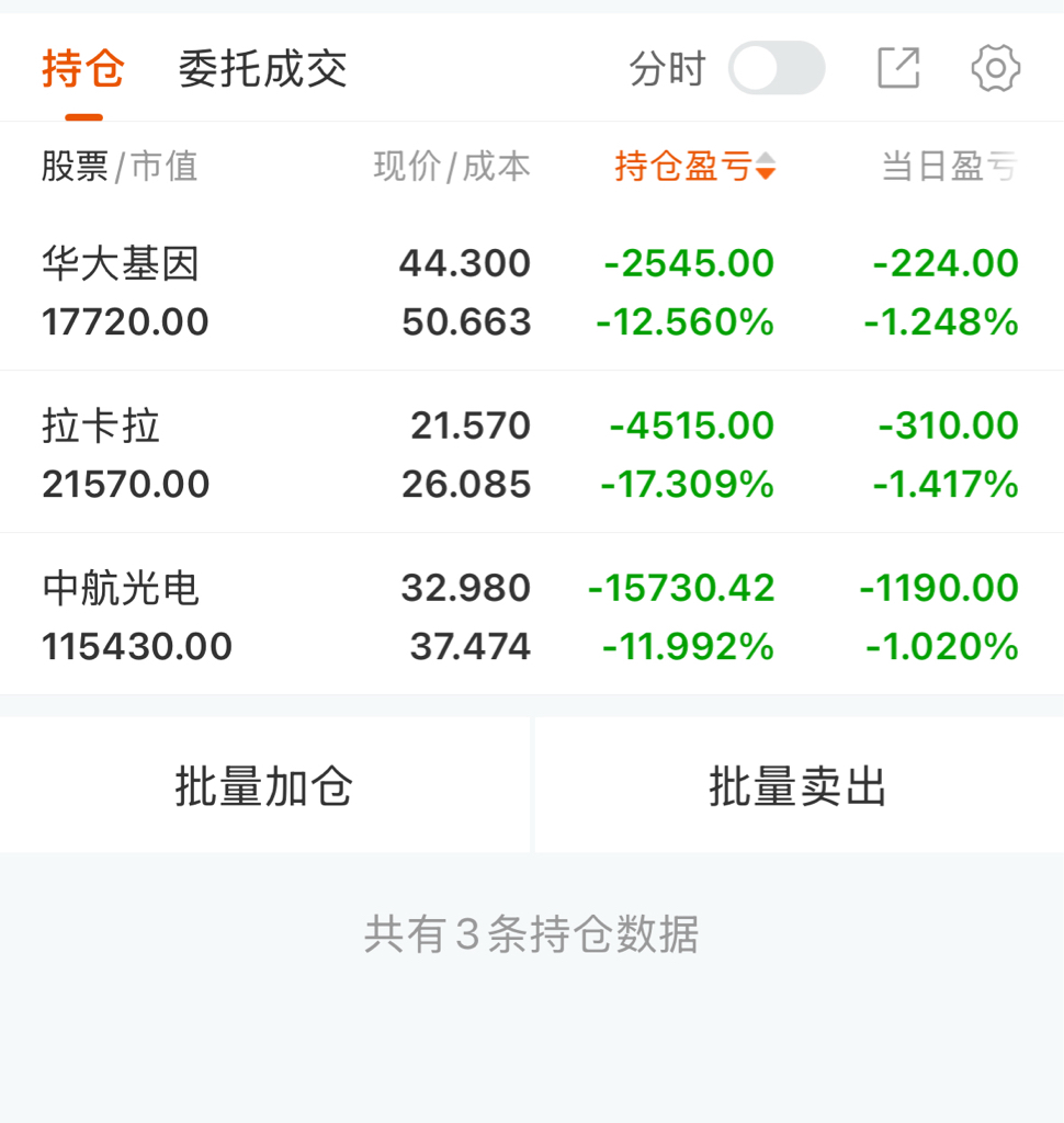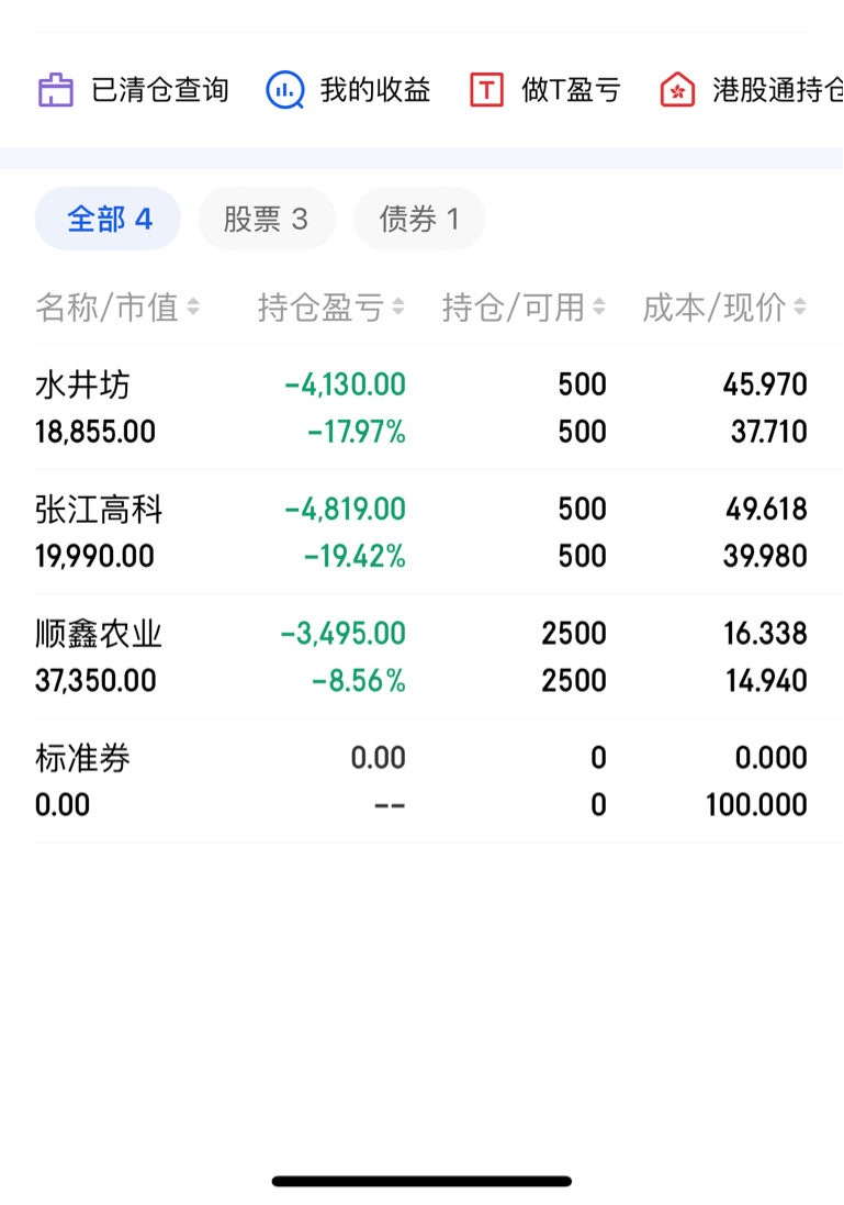 23年底,亏8万多割肉走了,之后1年多没有操作,今年一操作,2个账户使劲绿,没有
