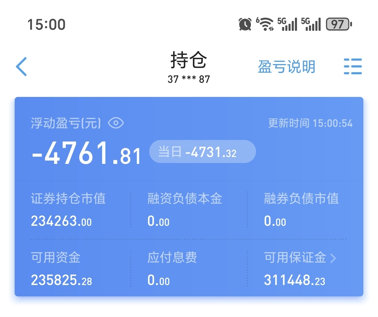 开始日期:2025年2月5日,初始资金:50万,今日盈亏:一4800,收盘市值: