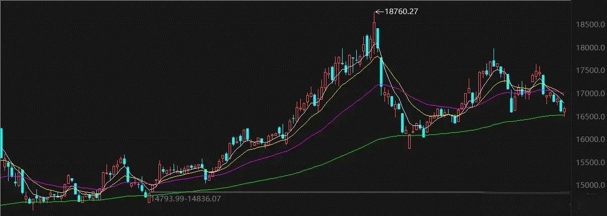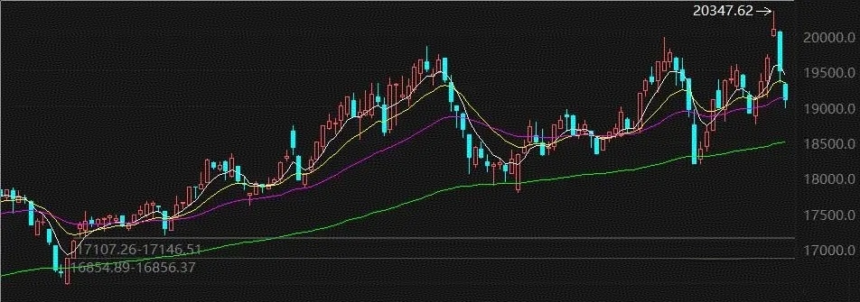 商业百货板块,连续两个交易日大跌了,走势很弱,当然前面已经是上涨了一波,还创了近期新高。近几个月的走势来看,实际上回踩下方绿色长期趋势线附近是一个低位埋伏博弈的好机会,前面的低点也基本是在长期趋势线附近止跌的。但是现在板块指数的位置是不上不下的位置,离长期趋势线还有一点距离,这该怎么办?现在比较像7月15日的状态,如果周一能够借利好消息站稳紫色中期趋势线之上,那么短期就有止跌的可能性,后续有望再次反身向上。东方财富目前商业百货板块指数是19076.91,周一最好站稳19125点上方,那么短期向上的概率就会变大了,站稳5日均线就可以考虑短线的博弈了。