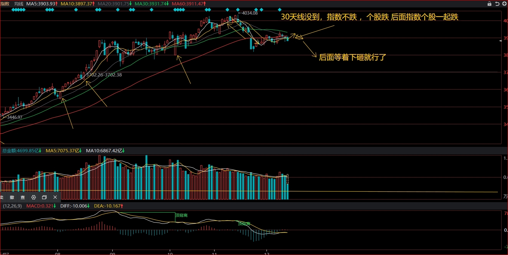 $上证指数(SH000001)$ 还是撤,这个地方还是按照画的为准,这个地方还是下砸出空间,今天是确认下砸!没法玩今年,时间不够了今年!没有一点办法,除非本周砸5%以上才能再次进场了,昨天进场是因为上午下跌放量了,下午又缩回去了,今天下跌没有量,继续砸可能会,不做了,亏钱没有办法这个月,但是后面那个坑不躲过去,今年的利润都可能会都没有了