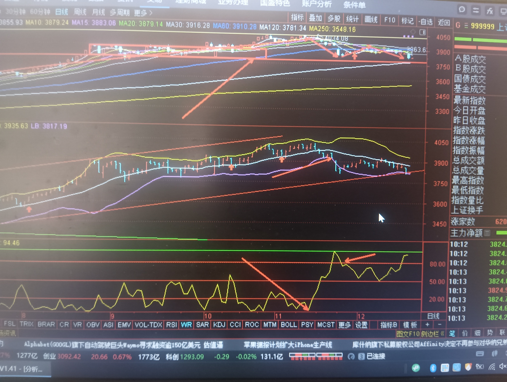 三哥说:上证10点14分钟wR、布林图示:转趋、触下轨、今日就指望5~15分钟级