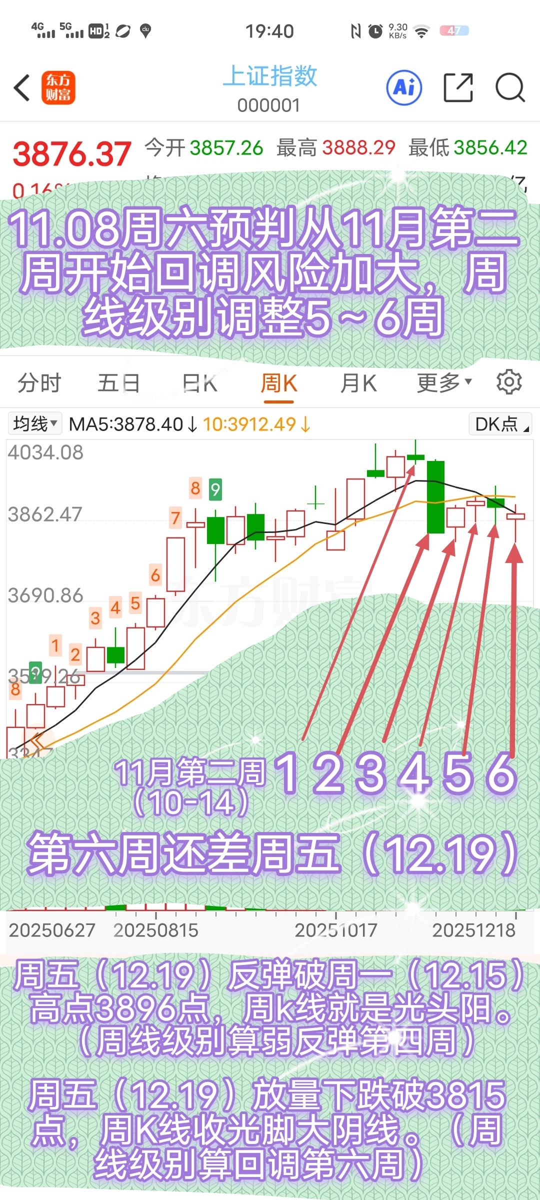 2025.12.19周五(0137)期待放量跌破3815点!(下周就有机会结束调