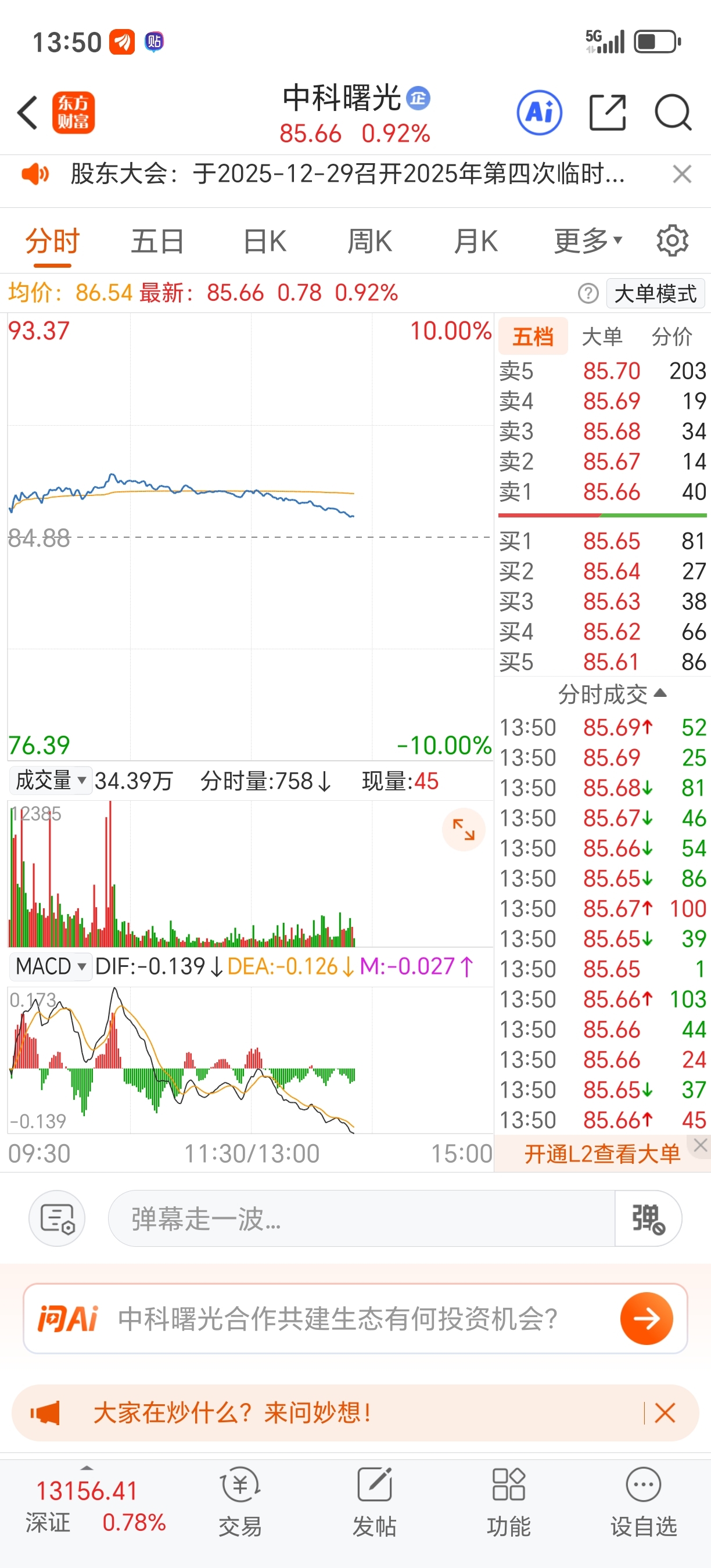 中科曙光最后的抄底机会,现价或者挂85.43直接全仓抄底进,下周必有8个点没有任