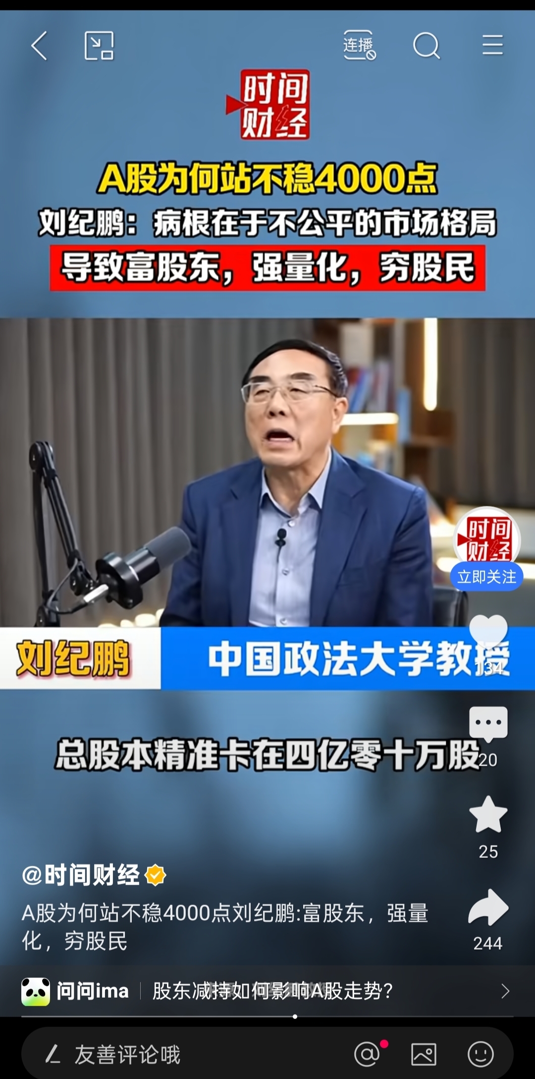 $上证指数(SH000001)$ 富股东强量化穷股民,这就是A股上不去的原因