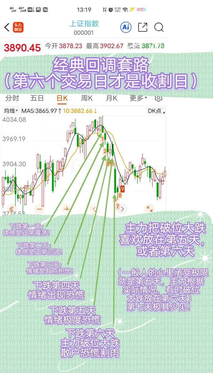 日线级别回调套路,也适用于周线级别回调套路!(诱空多发生在第五周或第六周)不考虑第七周!所以第六周没有出现诱空,就放弃了回调套路分析,改为弱反弹套路分析!