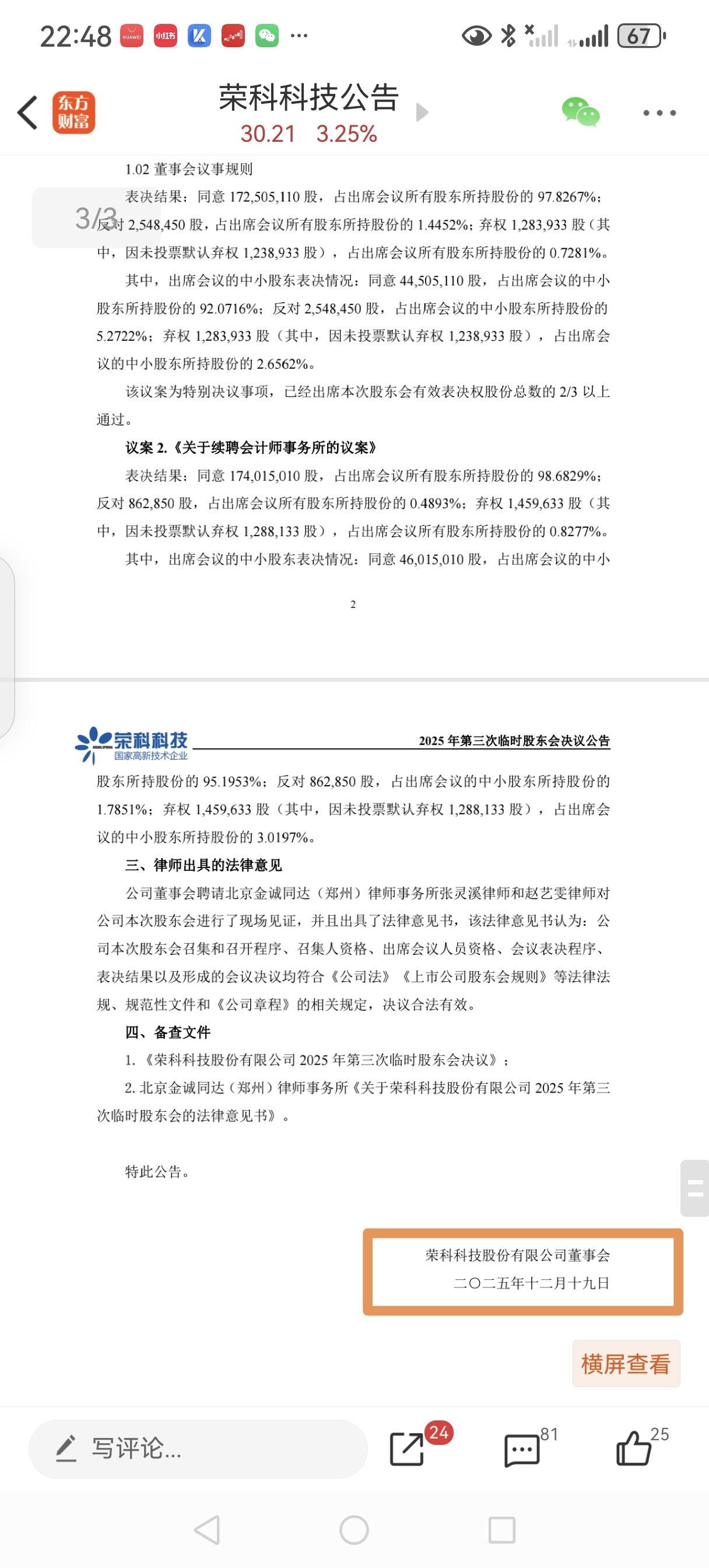 这是公告,是向公众广而告之,而并非法律文书原件。$上证指数(SH000001)$$荣科科技(SZ300290)$$创业板指(SZ399006)$