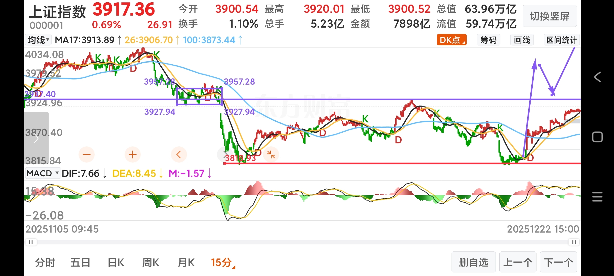 $上证指数(SH000001)$ 能不能行就看这两天了!尤其是明天!关注3936附近能不能有效突破回踩确认!还是过不去3936附近直接向下?毕竟还是下跌结构没有扭转过来!拭目以待