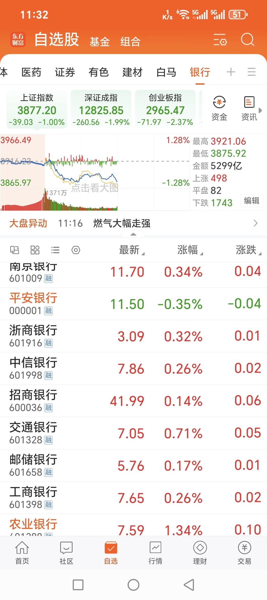 自选银行里唯一绿的…