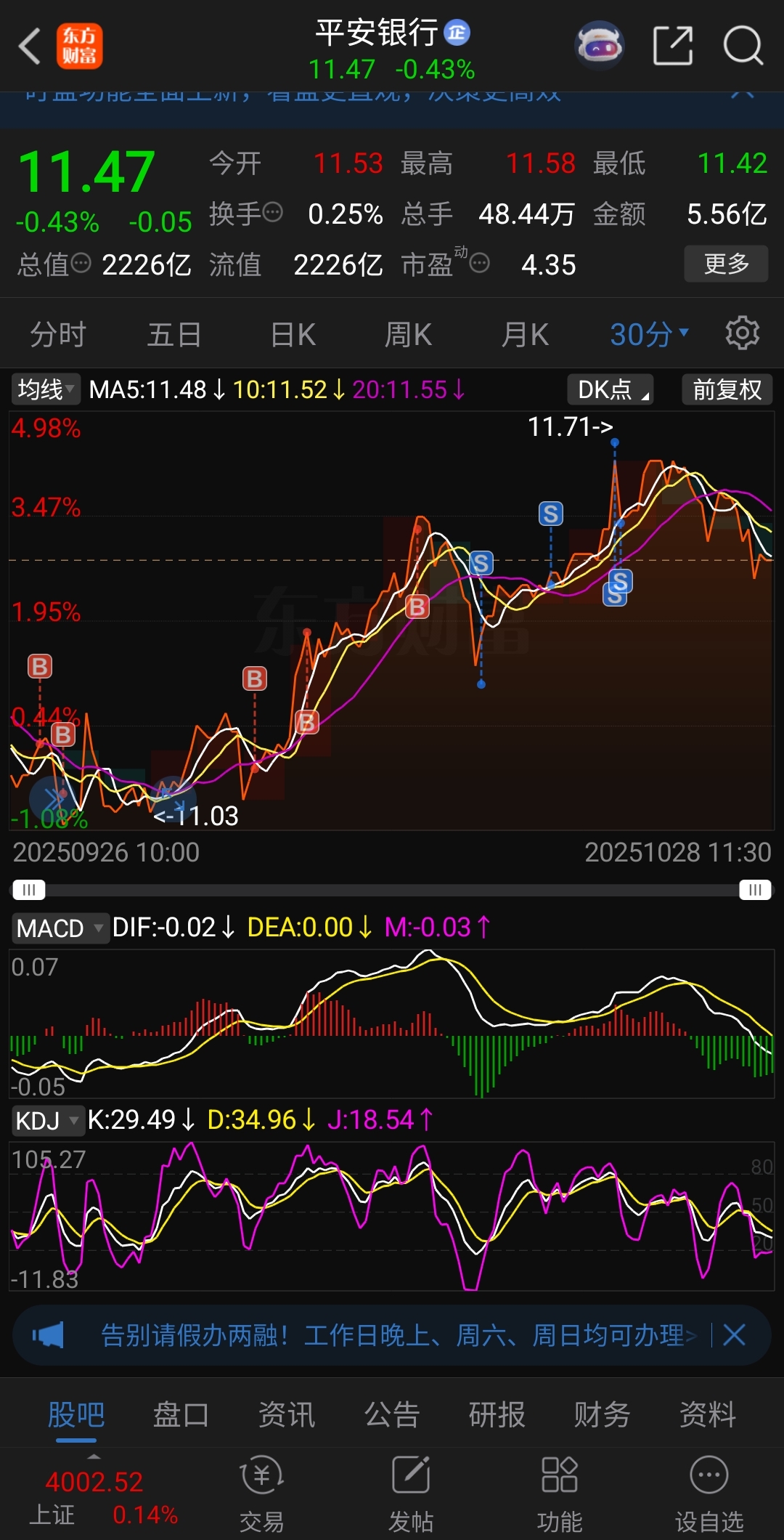 $平安银行(SZ000001)$ 呵~好困,困死我了,快快下来吧