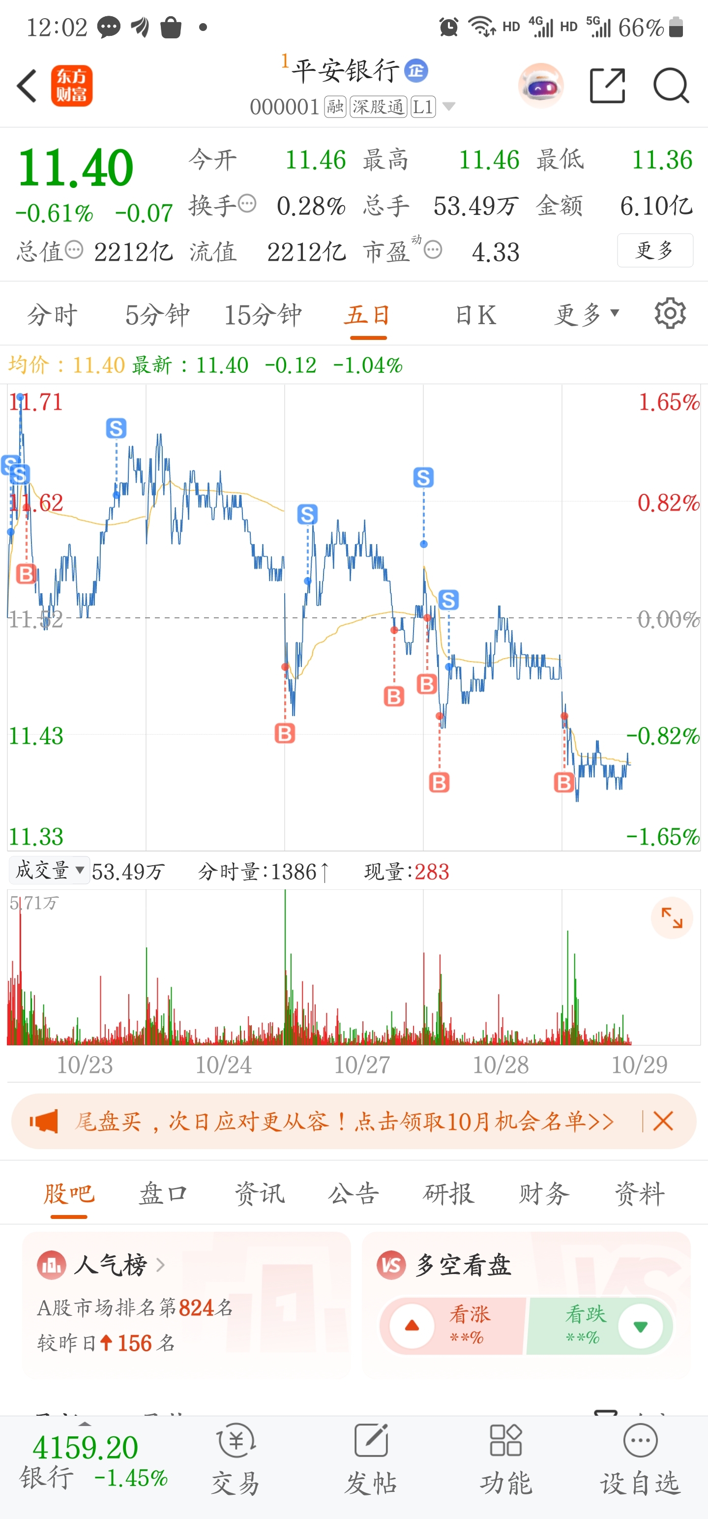 $平安银行(SZ000001)$ 跌够了吧?