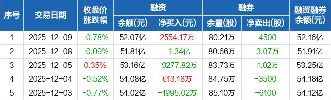 平安银行:融资净买入2554.17万元,融资余额52.07亿元(12-09)