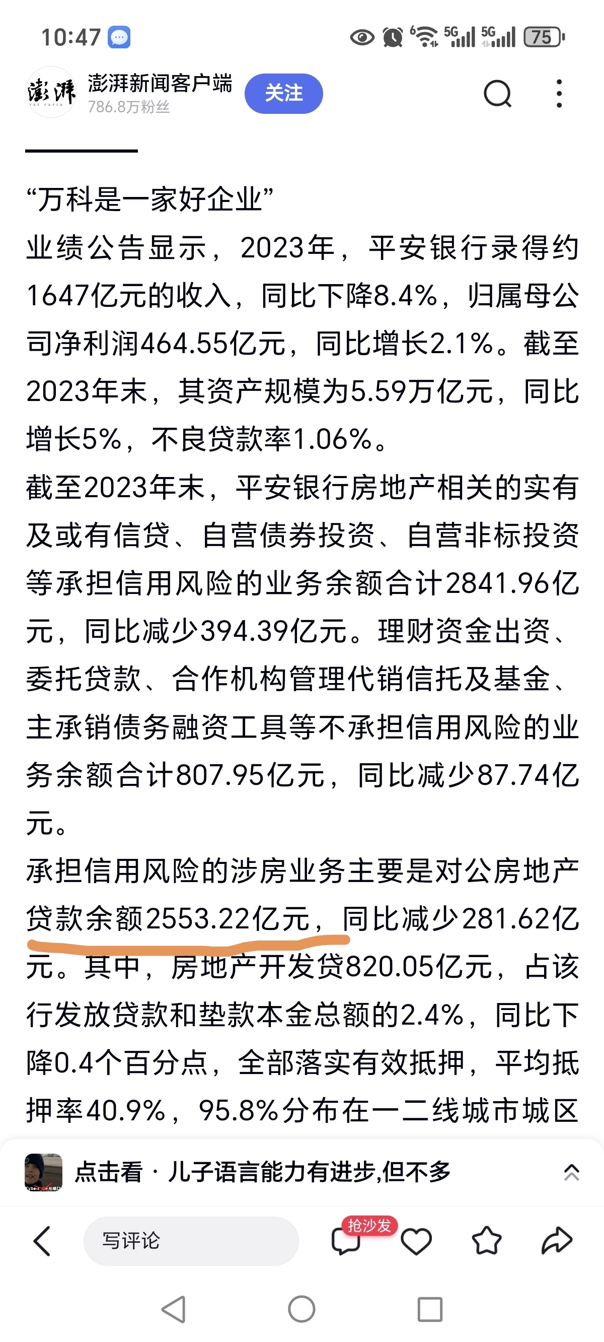 刚查了一下,平银的房地产贷款余额吓死人,虽然百度查公开给万科是46亿,但总的贷款