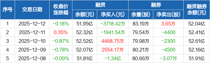 平安银行:融资净偿还3718.42万元,融资余额51.95亿元(12-12)