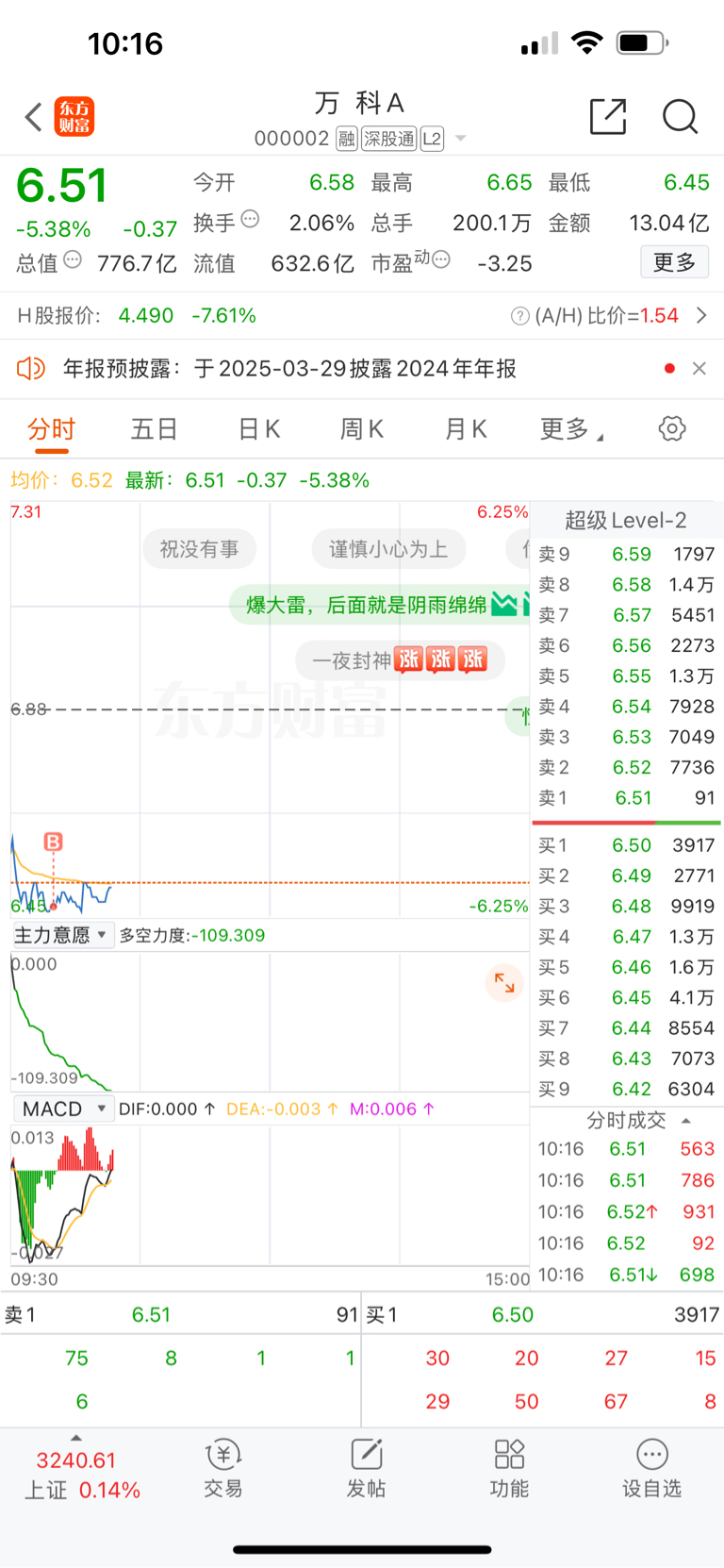 $万 科A(SZ000002)$ 全仓干