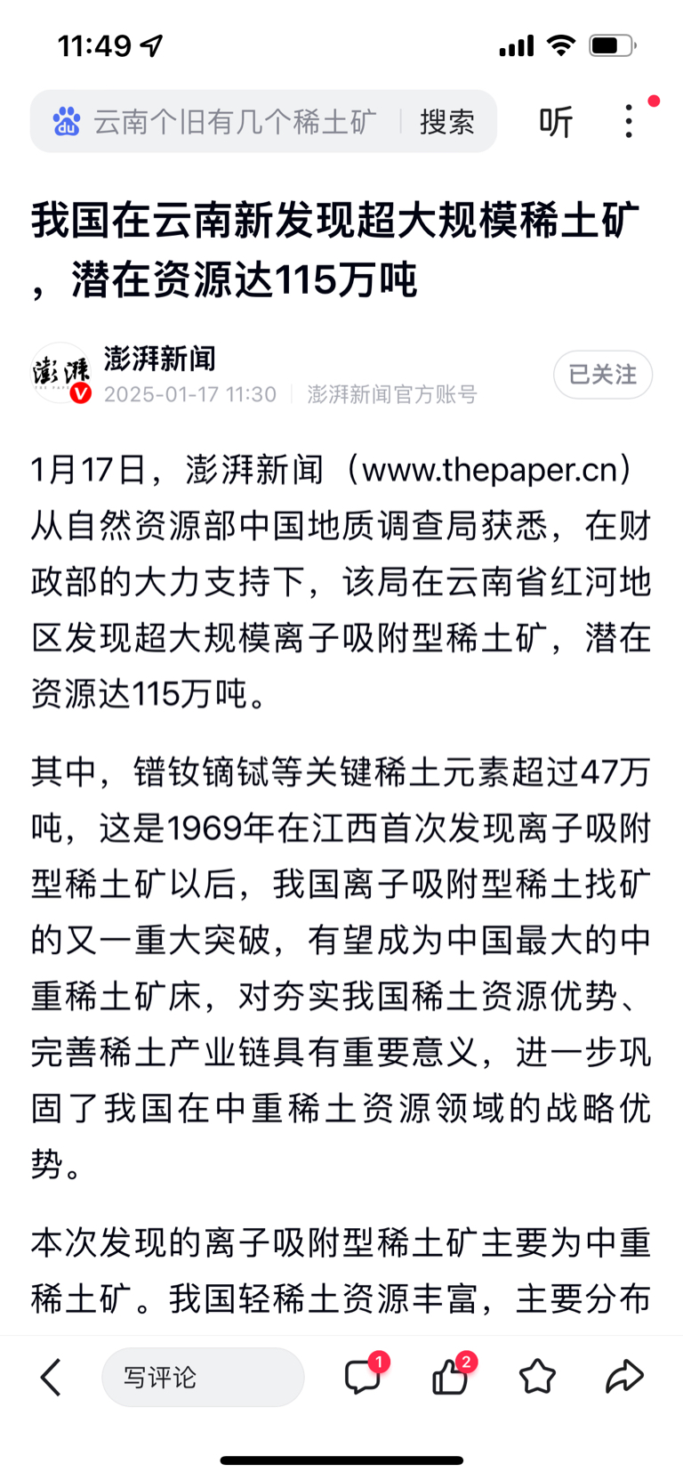 $万 科A(SZ000002)$ 下午重点关注云南锗业~半导体芯片大涨~最重磅的是在云南发现了~115万吨稀土矿
