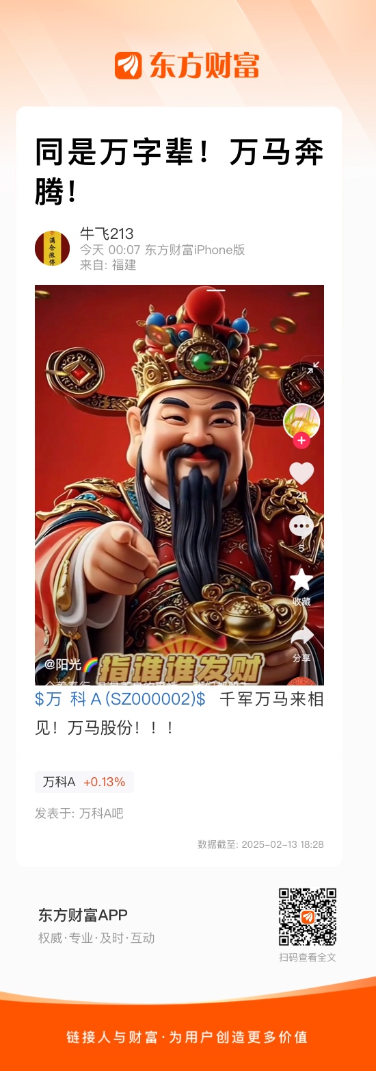 $万 科A(SZ000002)$  千军万马来相见!万马股份!!!