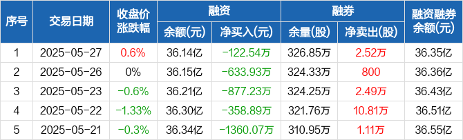 万科A:融资余额36.14亿元,创近一年新低(05-27)