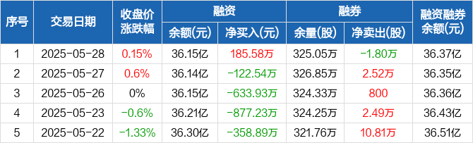 万科A:融资净买入185.58万元,融资余额36.15亿元(05-28)
